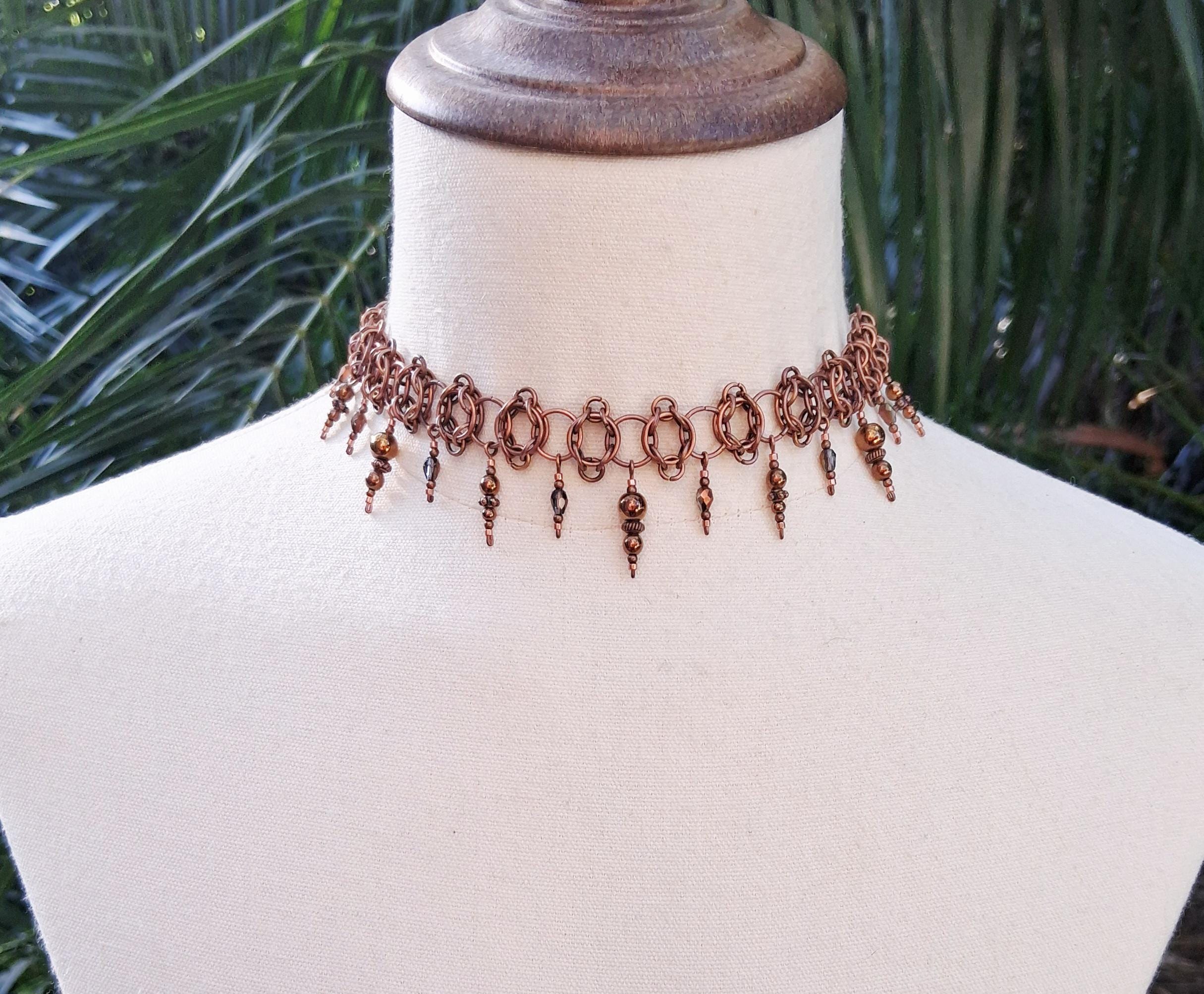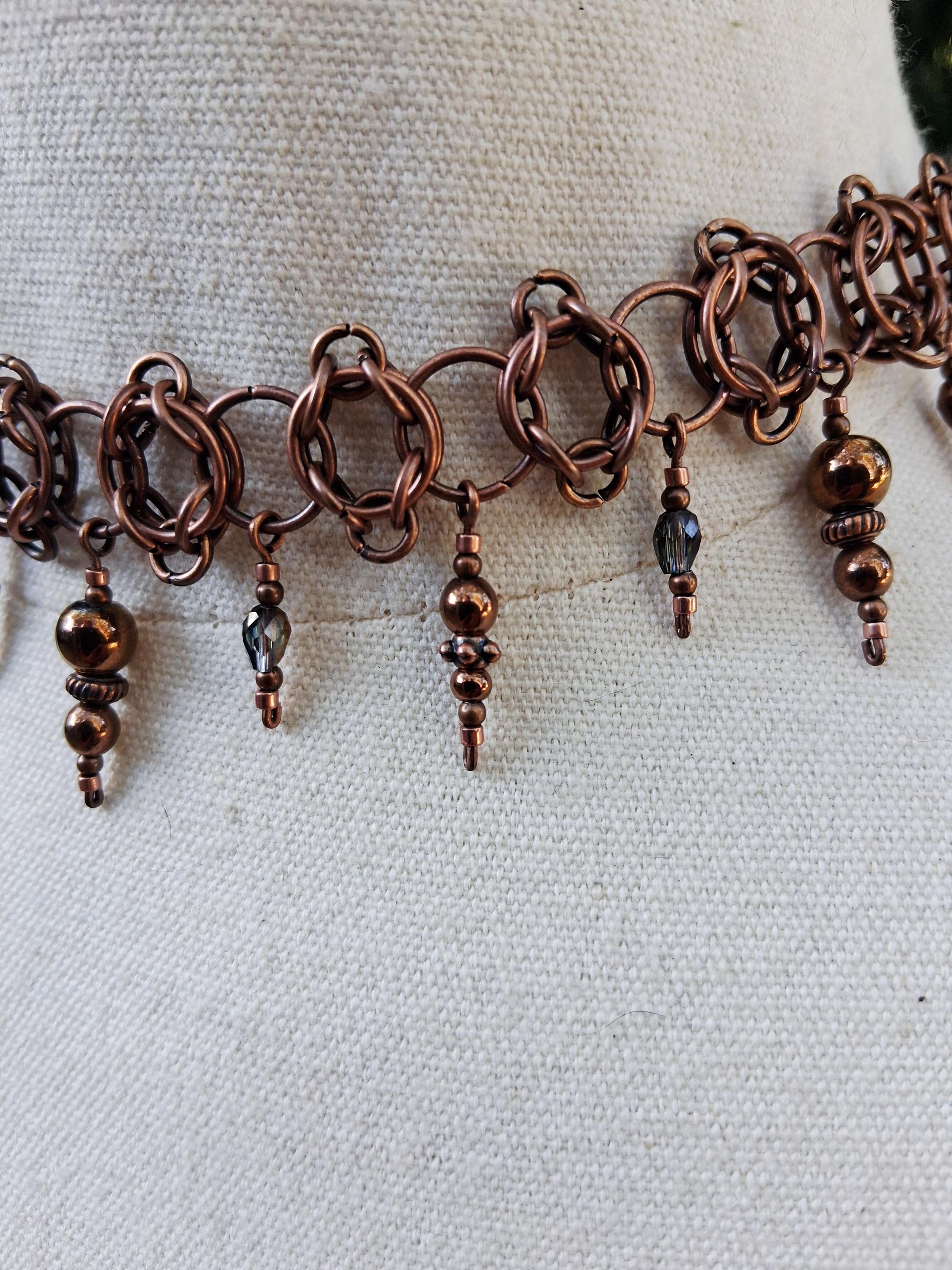 Steampunk Copper Hematite Chainmaille Necklace | Adjustable Statement Choker