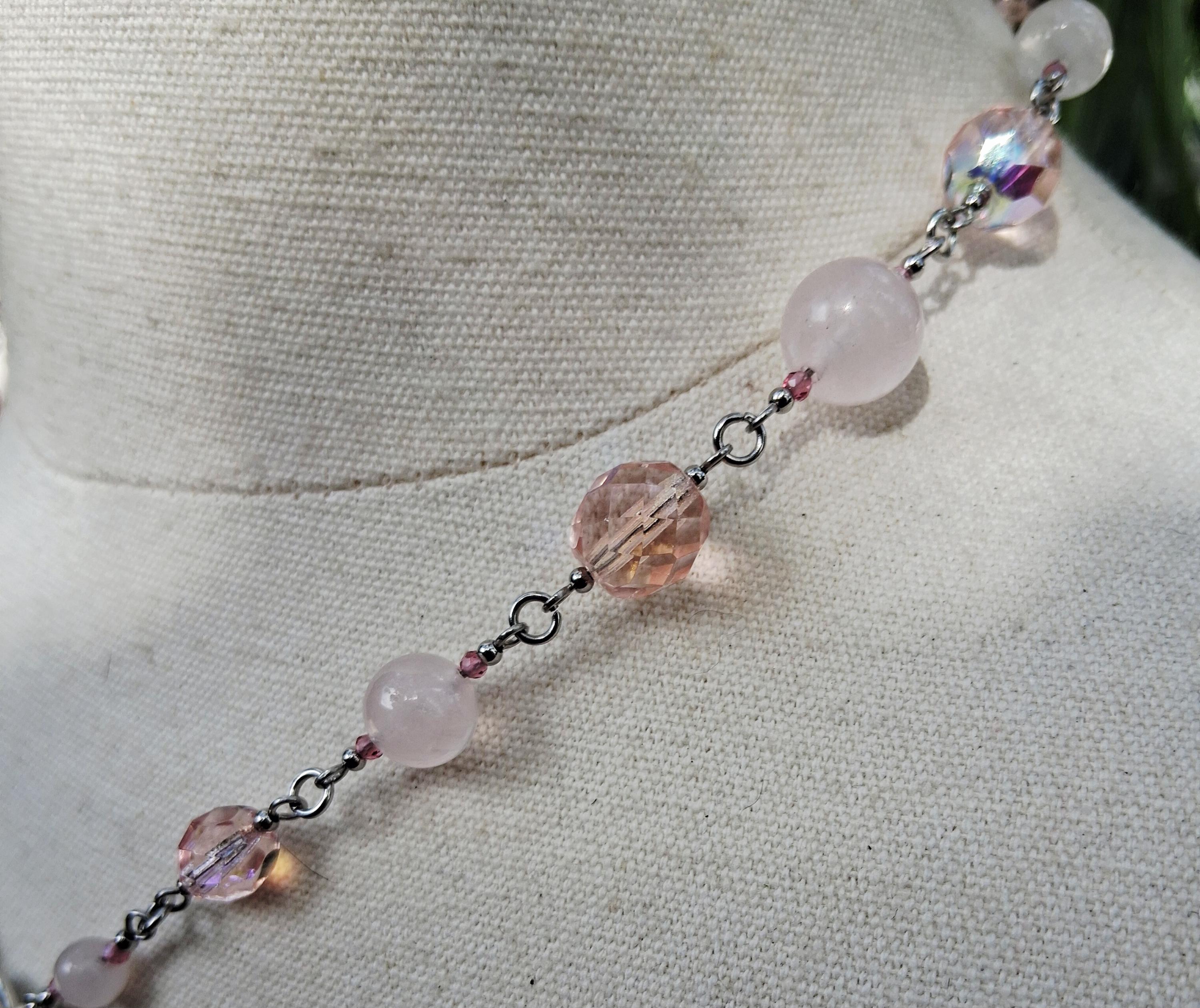 Materials: Rose quartz, glass beads, stainless steel findings