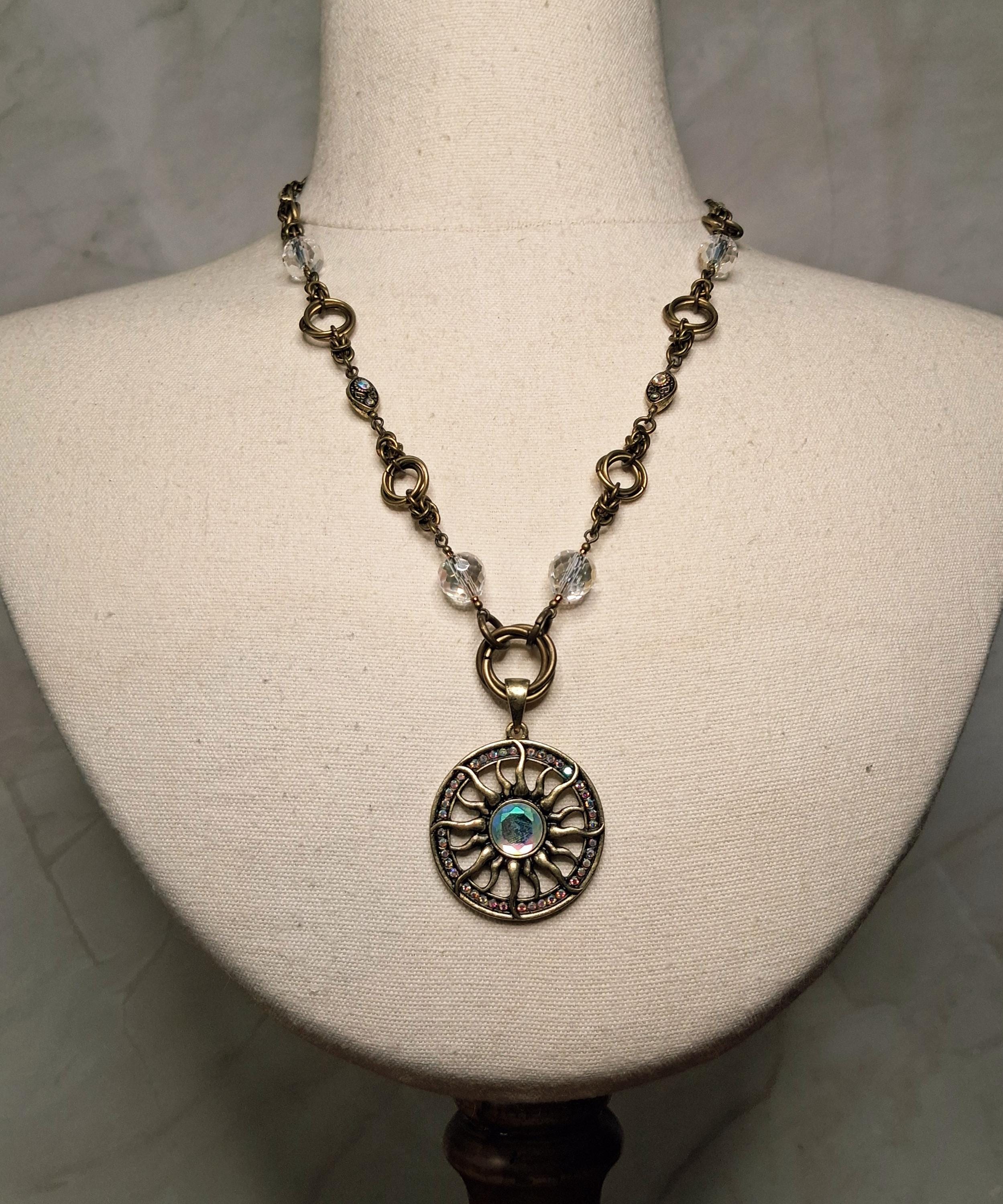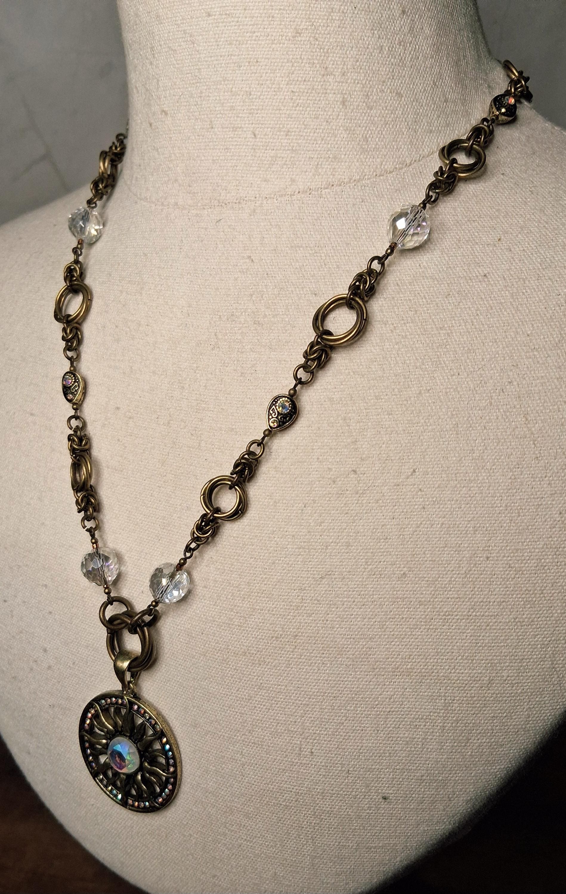 Materials: *Antique bronze–tone findings *Glass and metal accent beads *Pendant: Sun motif (metal) *Clasp: Signature double lobster claw clasp *Length: Approx. 22 inches *Adjustability: Not adjustable *Style: Boho • earthy • symbolic • timeless