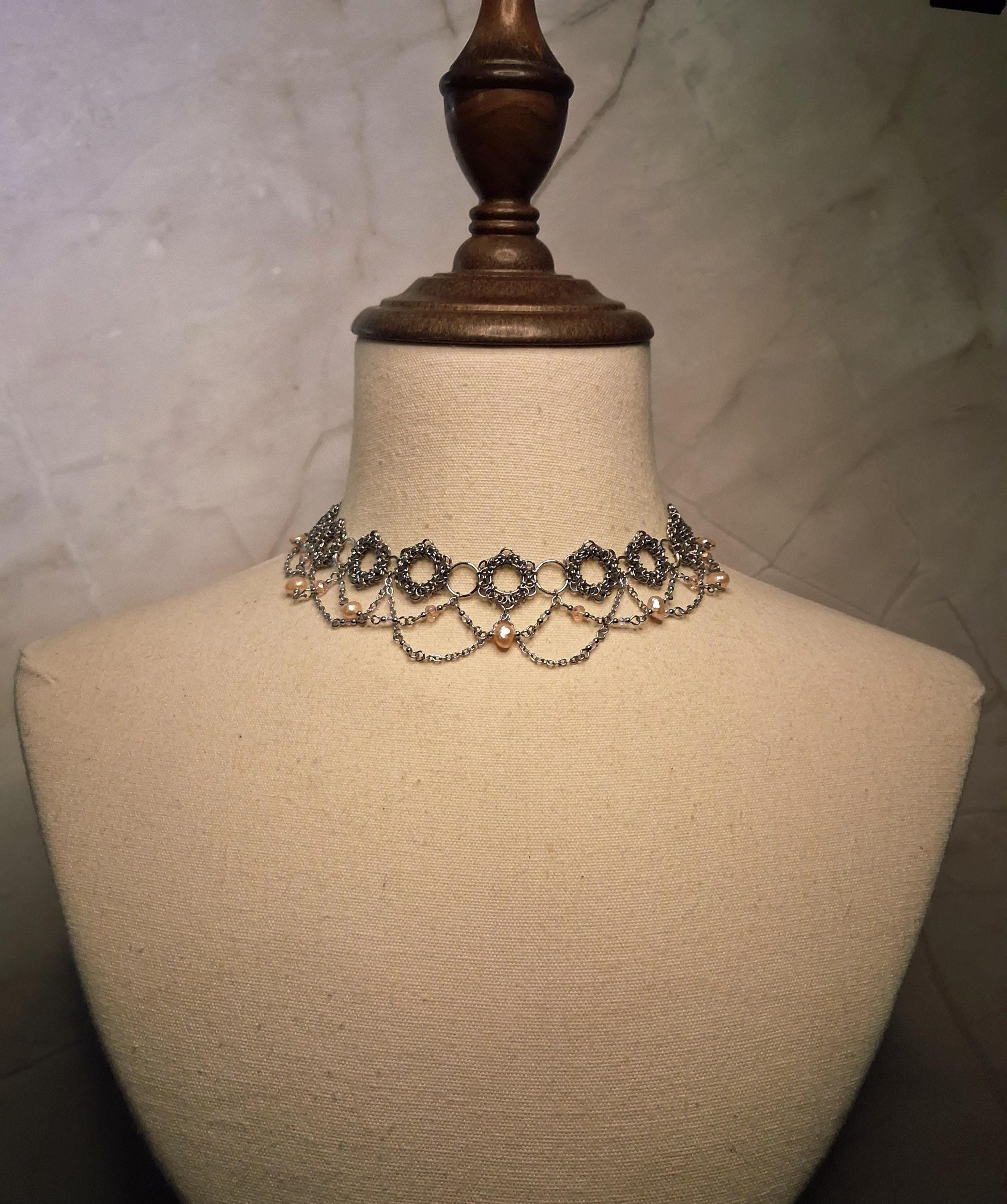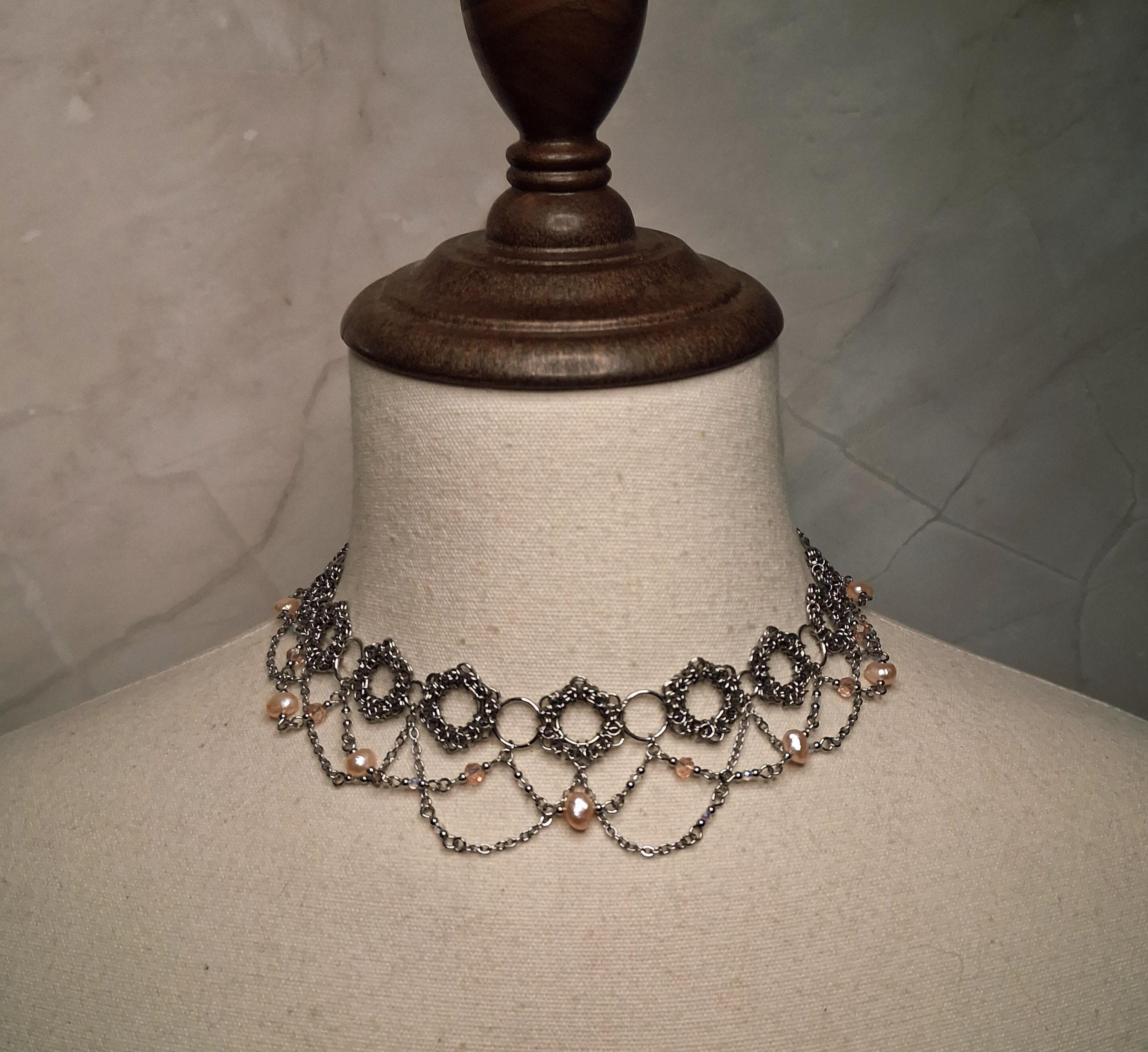 This is not bulky chainmaille. It is refined. Airy. Structured femininity.