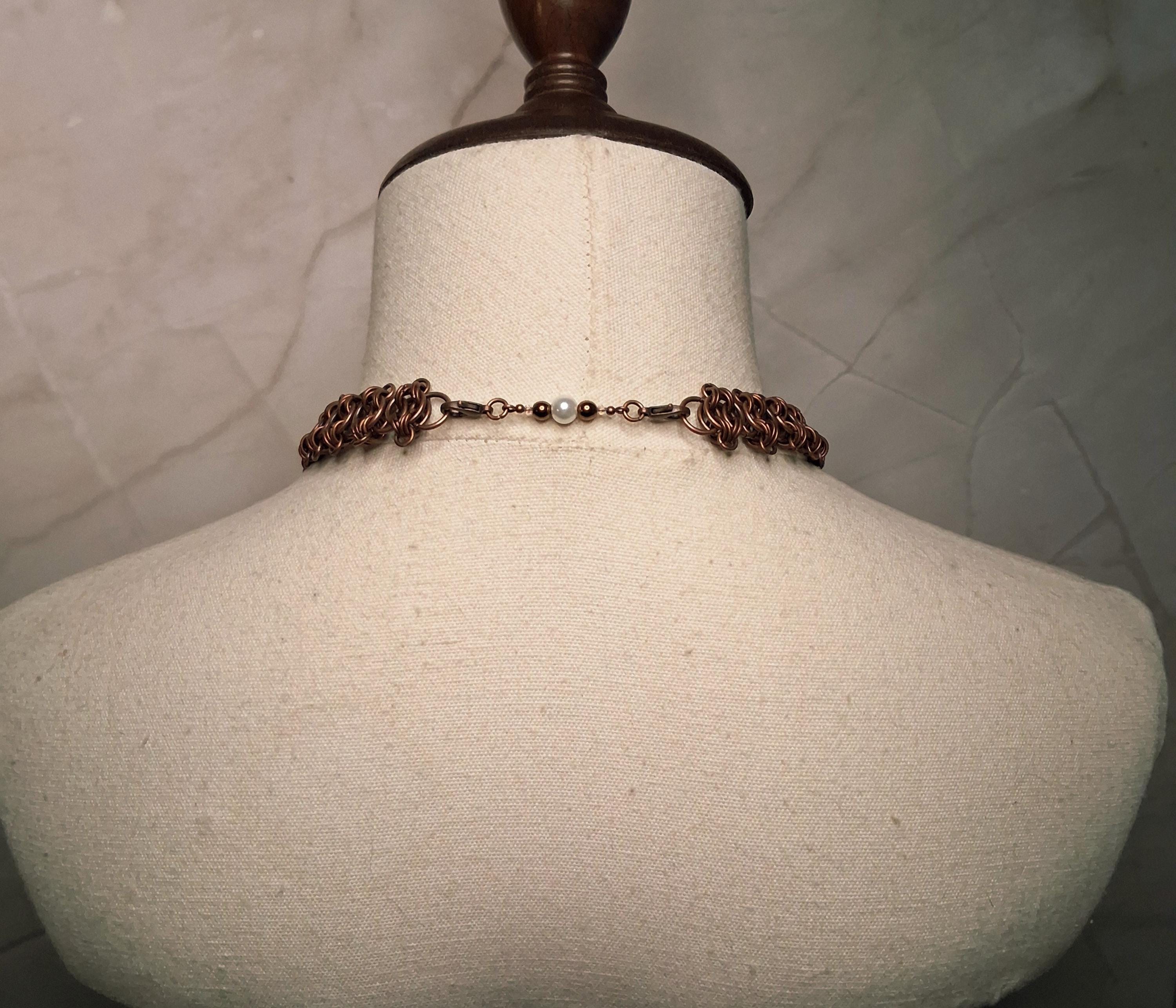 This Antique Copper Chainmaille Choker carries weight — physically and energetically.