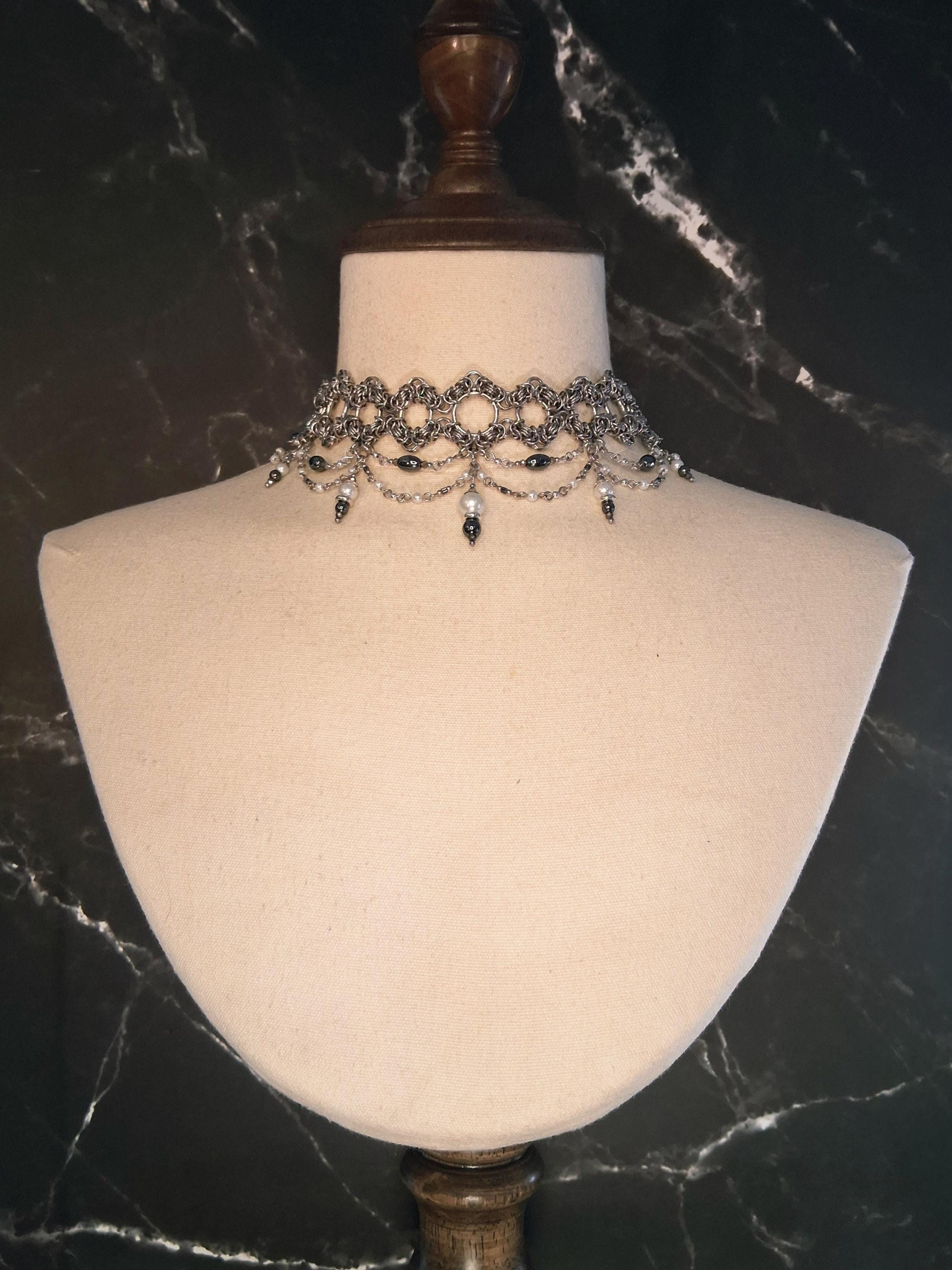 Style notes: *Ideal for gothic, dark romantic, witchy, Victorian-inspired, or alternative fashion looks. � *Sits like a close collar, so it works especially well with lower necklines, lace, velvet, structured black basics, or anything that deserves a little menace. �