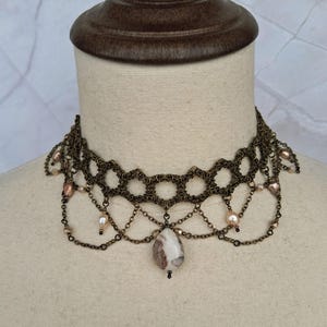 Style: Wide choker / collar necklace with center pendant drop